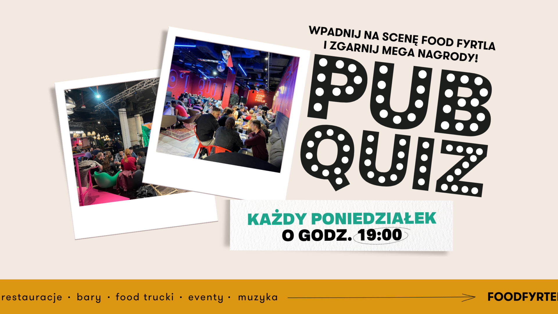 PubQuiz w Food Fyrtlu odbywa się co poniedziałek, w godzinach 19:00 – 21:00.